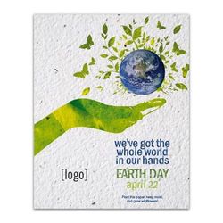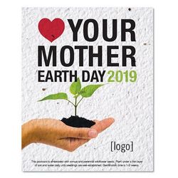 This panel card delivers more than just your custom-printed message – when planted, it grows into a garden of wildflowers! Your full-color, custom message is printed directly on Premium seed paper with Earth-friendly inks that wont damage the seeds.Our seed paper is made by hand from 100%-recycled material and embedded with a hardy mixture of wildflower seeds. Just plant the entire postcard, water, and enjoy your wildflowers! Choose from our pre-designed Earth Day artwork. Choose a letter after the -EDEW- to reference the design you love. Send us your camera-ready logo and well do the rest. Or fully customize the item for no additional charge.